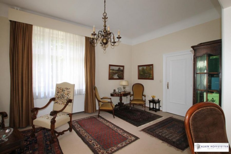La bâtisse comporte un magnifique hall d'entrée avec cheminée, triple salon / réception, salle à manger, cuisine, 6 chambres à coucher dont une avec salle de bains, salle de douche séparée. Belle terrasse et véranda (jardin d'hiver) au 1er étage.