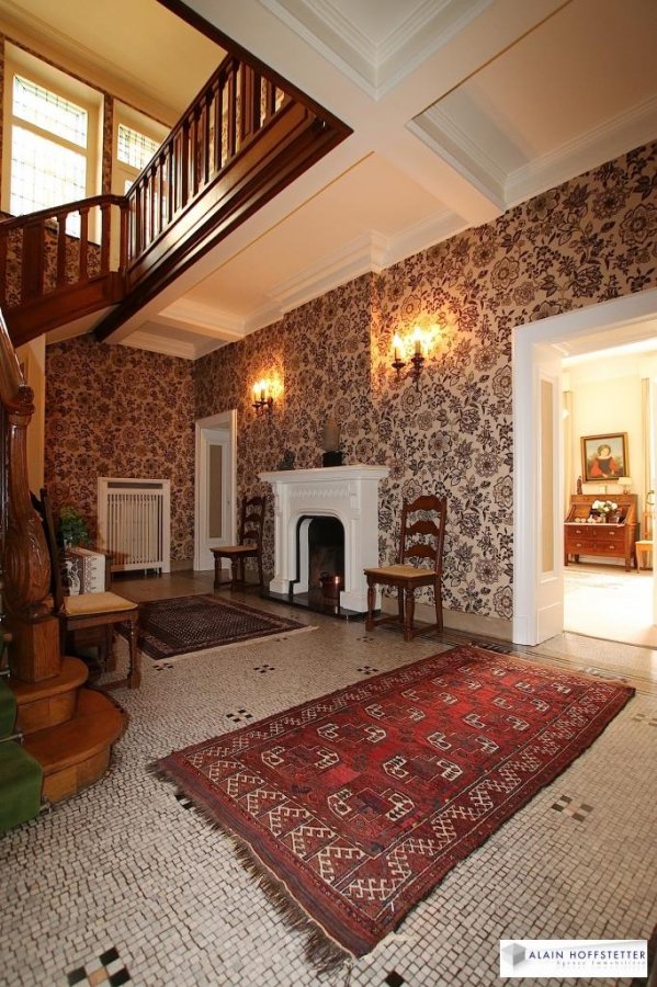 La bâtisse comporte un magnifique hall d'entrée avec cheminée, triple salon / réception, salle à manger, cuisine, 6 chambres à coucher dont une avec salle de bains, salle de douche séparée. Belle terrasse et véranda (jardin d'hiver) au 1er étage.